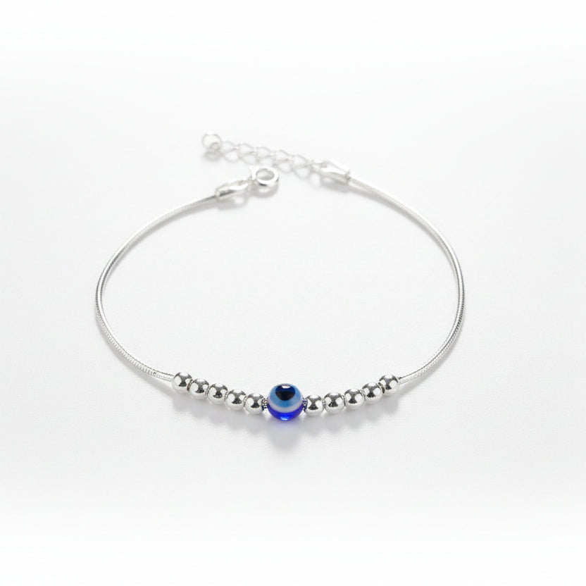 Crafted in pure 925 sterling silver with classic blue evil eye charm. Polished silver bead detailing for added shine & elegance. A stylish symbol of protection designed for daily wear.
