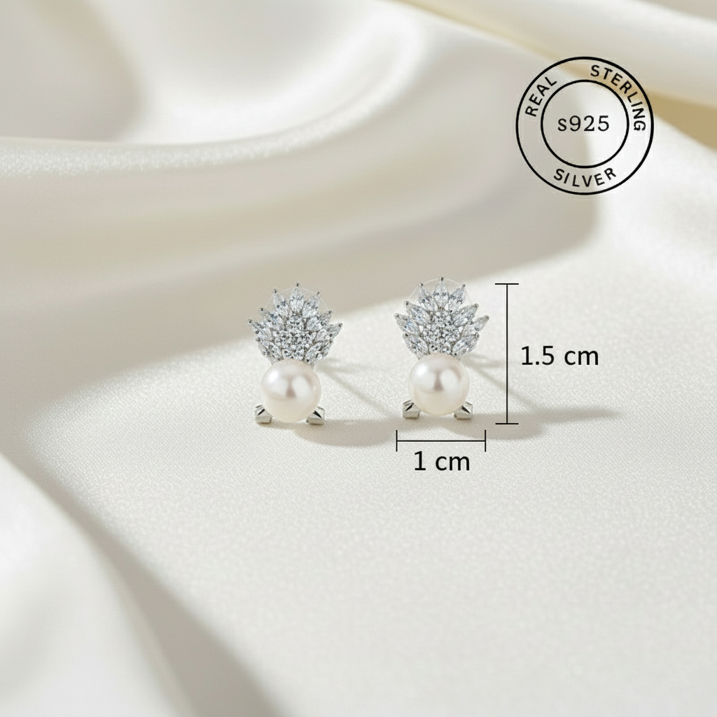 A classic pearl topped with a delicate CZ crown flourish. 925 sterling silver gives it grace and everyday durability. Perfect for work days when you want a hint of royalty.