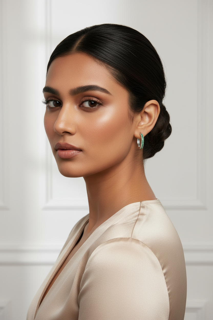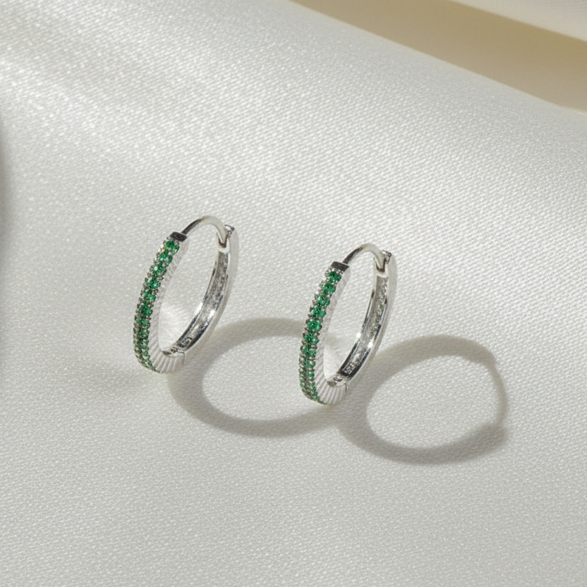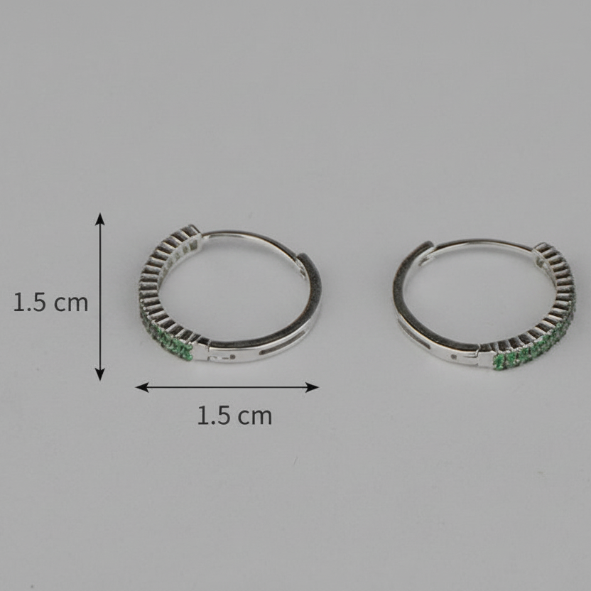 Crafted in pure 925 sterling silver, these sleek hoop earrings feature vibrant green stones for a fresh, radiant look. Lightweight, skin-safe, and perfect for everyday wear or festive styling.
