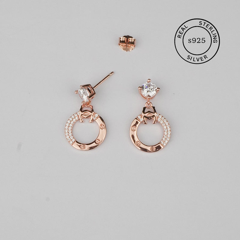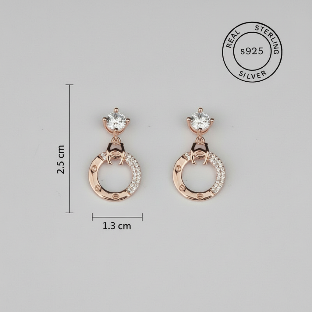 Earring Size : Height - 2.5 cm and Width - 1.3 cm, Color - Rosegold, Weight - 3.85 gms