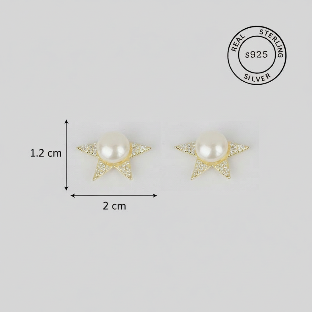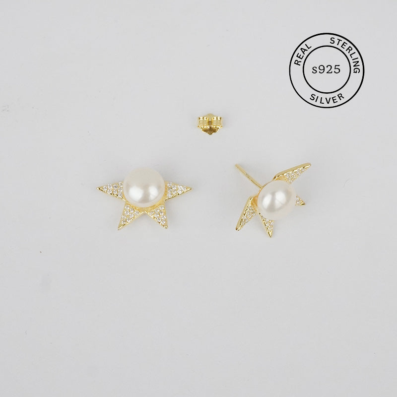 Sharp lines meet soft elegance in these 925 sterling silver star studs. Finished with a luminous pearl, they bring quiet charm to workwear. A modern twist for your everyday style.