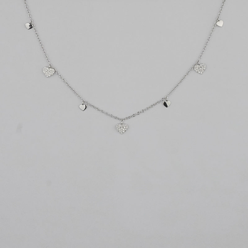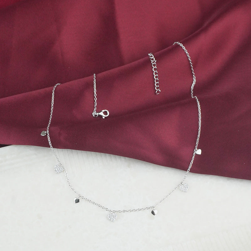This 925 sterling silver necklace features a refined mix of polished and crystal-studded heart charms. Minimal yet meaningful, it’s designed to match your everyday workwear. A graceful blend of love and professionalism for the modern woman.