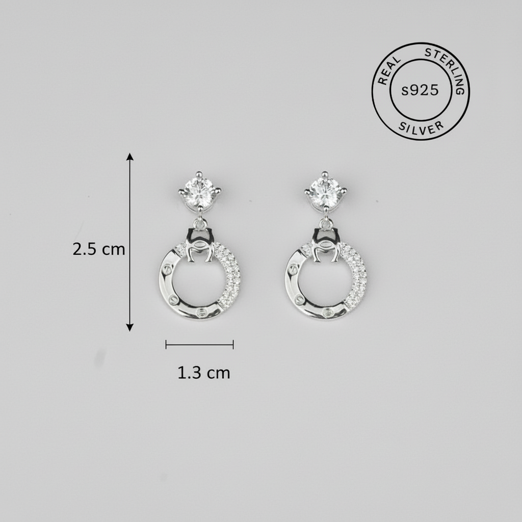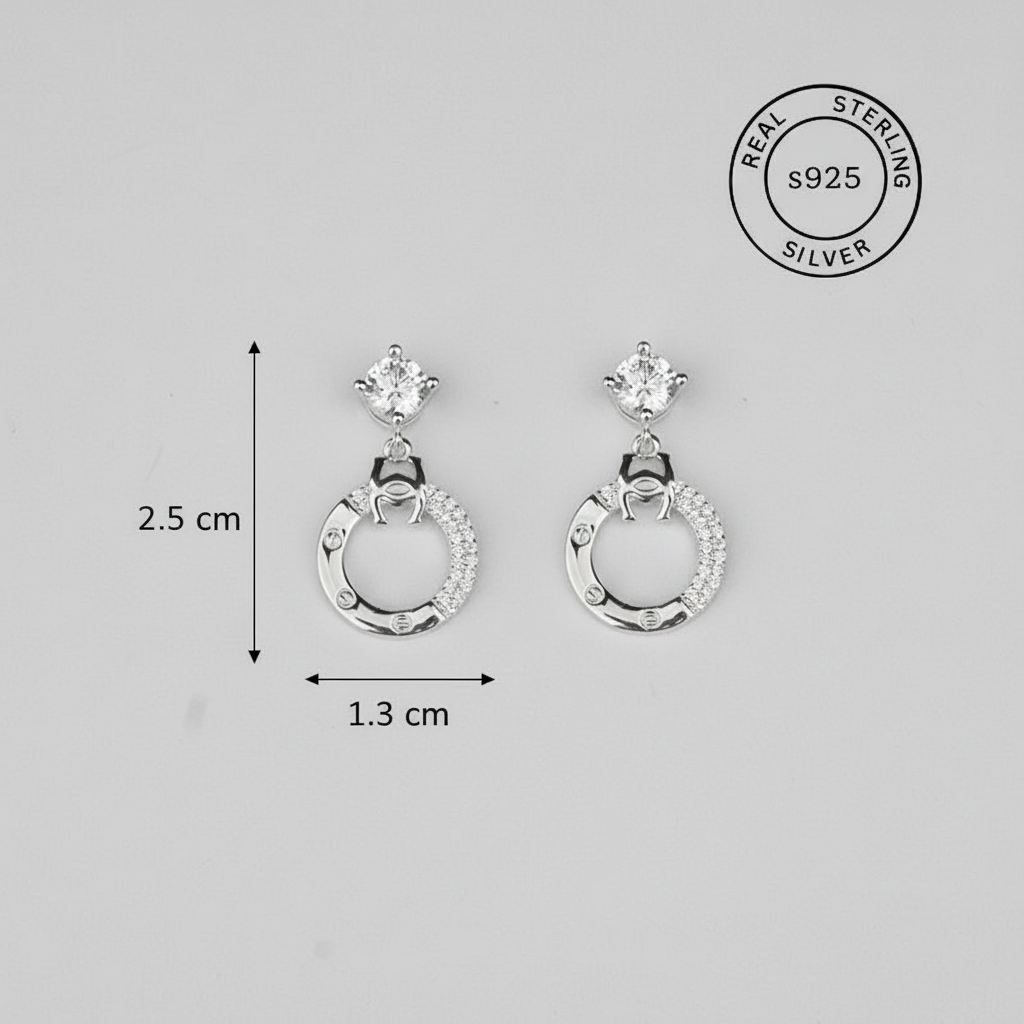 Earring Size : Height - 2.5 cm and Width - 1.3 cm, Color - Silver, Weight - 3.85 gms