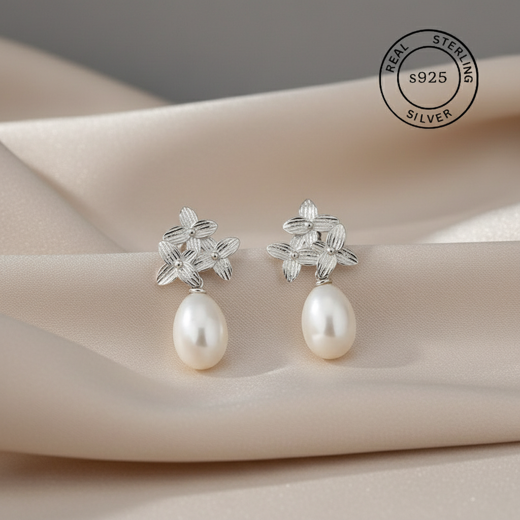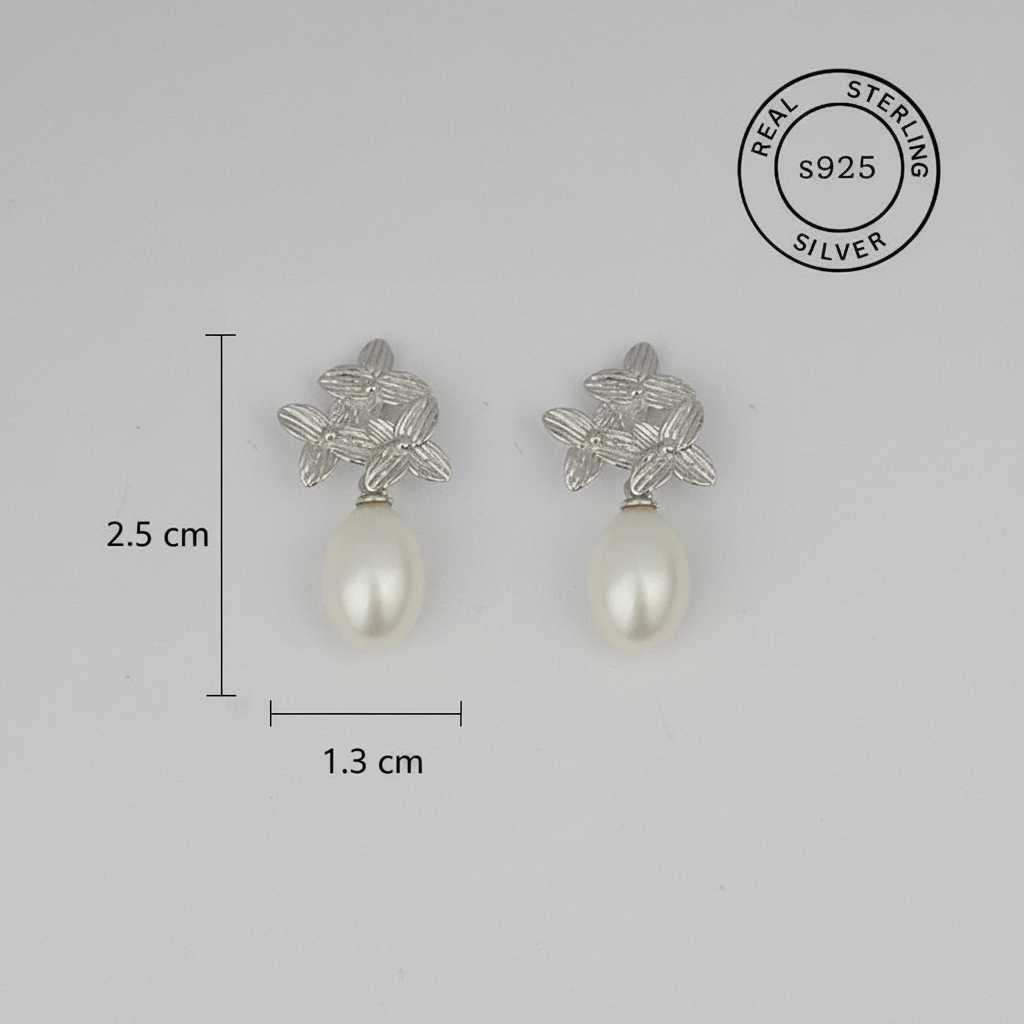 Sleek floral design in 925 sterling silver with a classic pearl drop. Subtle yet sophisticated — perfect for 9 to 5 elegance. Comfortable, lightweight, and polished for daily wear.