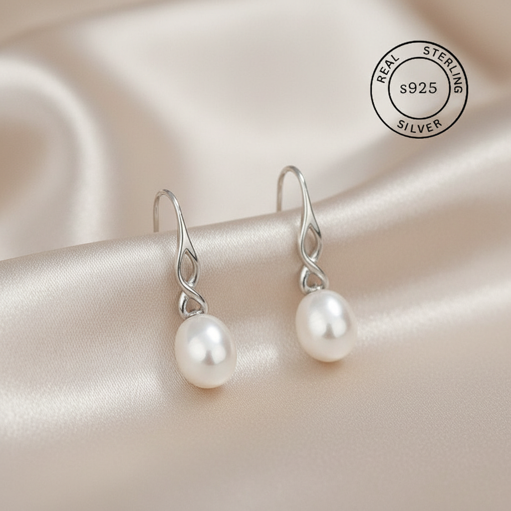 Minimal twist design in 925 sterling silver with a classic pearl drop. Effortlessly elegant, perfect for workdays and beyond. Lightweight, timeless, and refined for everyday polish