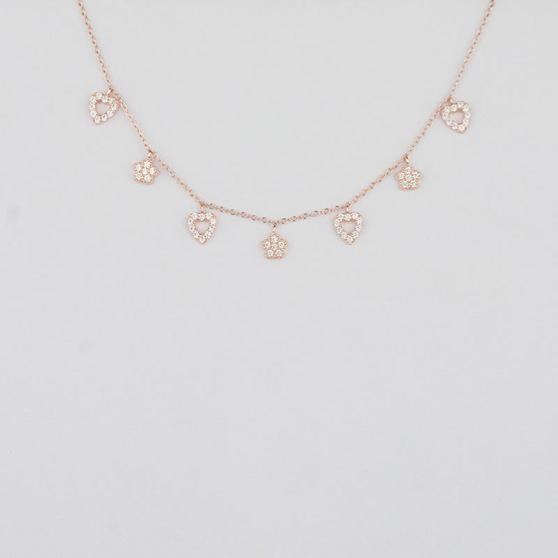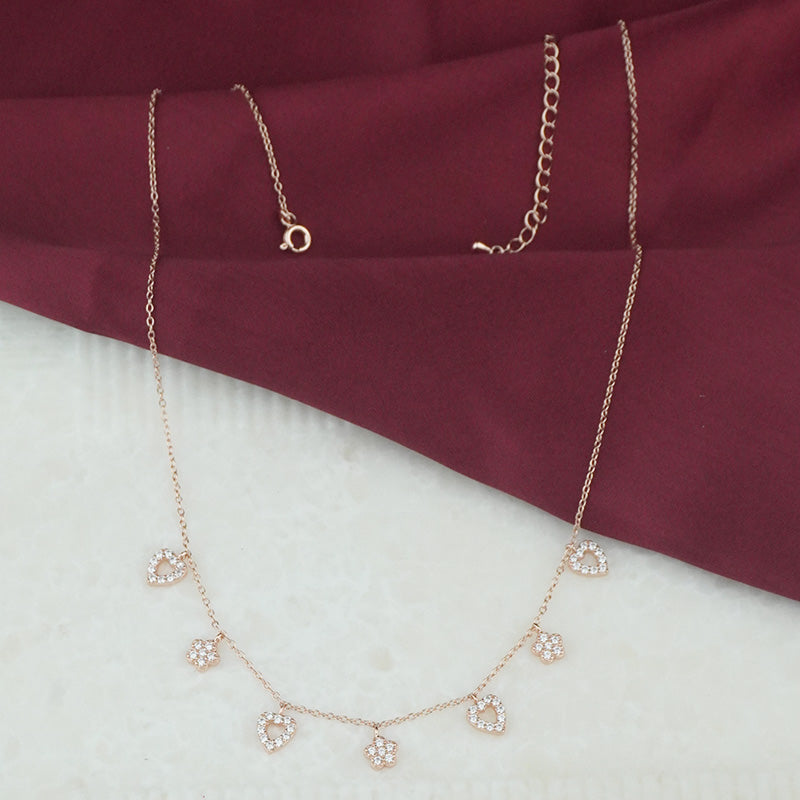 Adorned with alternating crystal hearts and crown charms, this rose gold 925 sterling silver necklace adds a royal sparkle to your everyday style. Lightweight, refined, and versatile — ideal for both office meetings and after-hours charm. For the woman who leads with grace and wears her crown daily.
