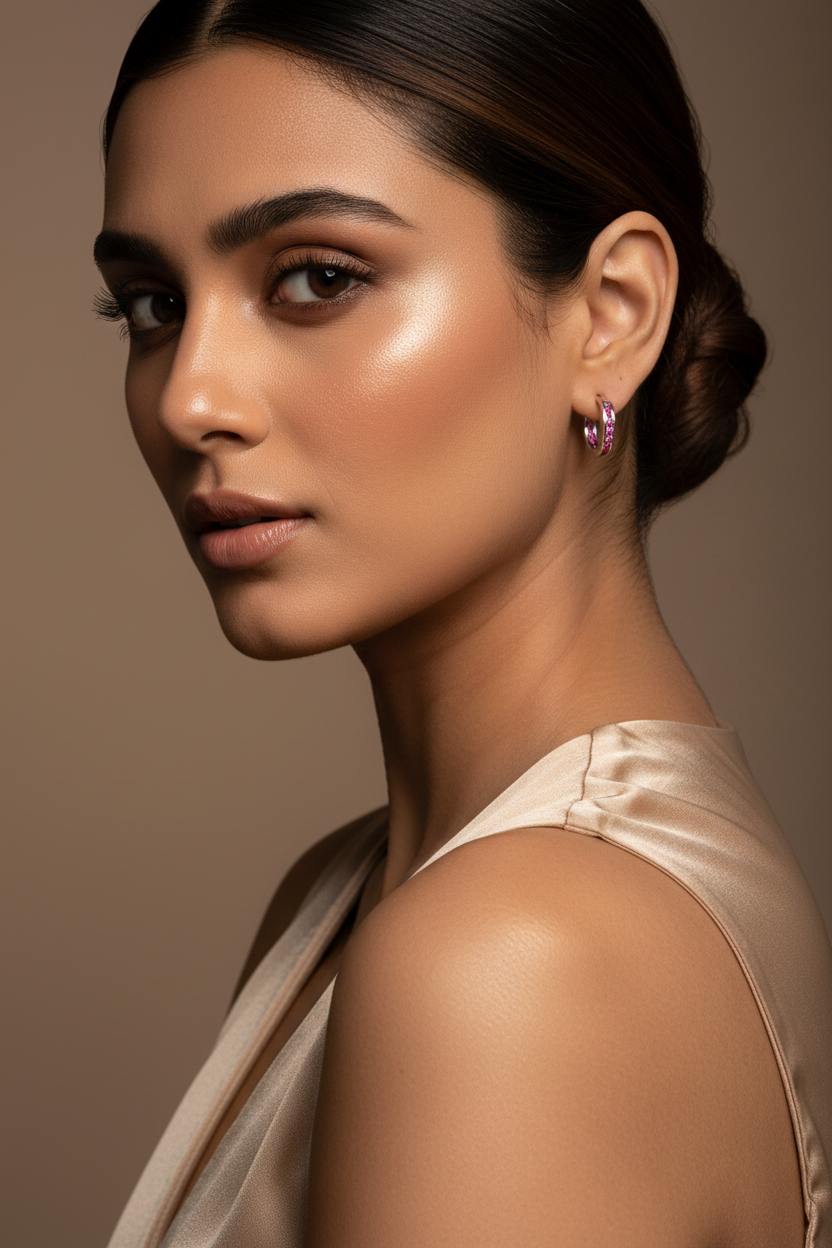 Crafted in pure 925 sterling silver, these sleek hoop earrings feature a clean line of vibrant pink stones for a chic pop of color. Lightweight, skin-safe, and perfect for everyday elegance or office wear.