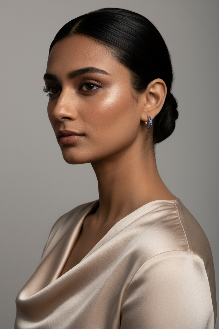Crafted in pure 925 sterling silver, these sleek hoop earrings feature a refined line of deep blue stones for subtle sparkle. Lightweight, skin-safe, and perfect for everyday elegance or office wear.
