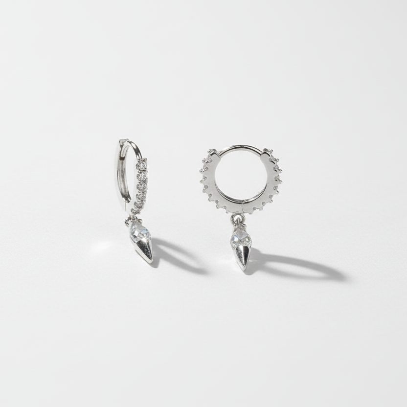 Crafted in pure 925 sterling silver, these sleek hoop earrings feature a striking dangling crystal charm with subtle sparkle accents. Lightweight, skin-safe, and perfect for everyday chic or evening styling.