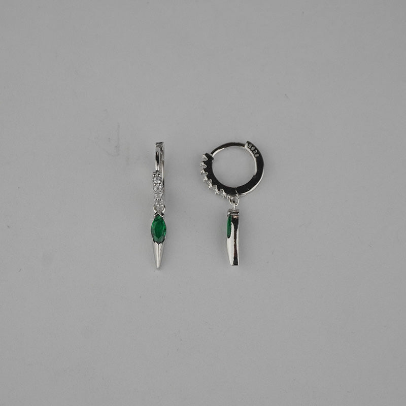 Crafted in pure 925 sterling silver, these modern hoop earrings feature a sleek dangling green stone charm with subtle sparkle accents. Lightweight, skin-safe, and perfect for statement everyday styling or evening wear.