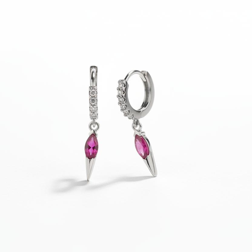 Crafted in pure 925 sterling silver, these striking hoop earrings feature a sleek dangling pink stone charm with subtle sparkle accents. Lightweight, skin-safe, and perfect for bold everyday styling or evening looks.