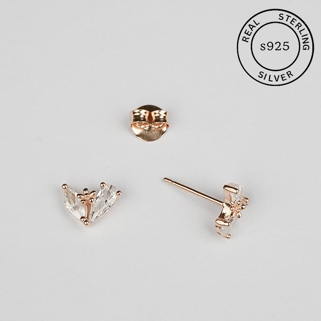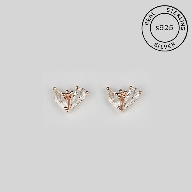 These elegant wing-shaped stud earrings feature marquise-cut cubic zirconia, delicately set in 925 sterling silver with their dainty yet eye-catching design makes them perfect for adding a subtle sparkle to any outfit.
