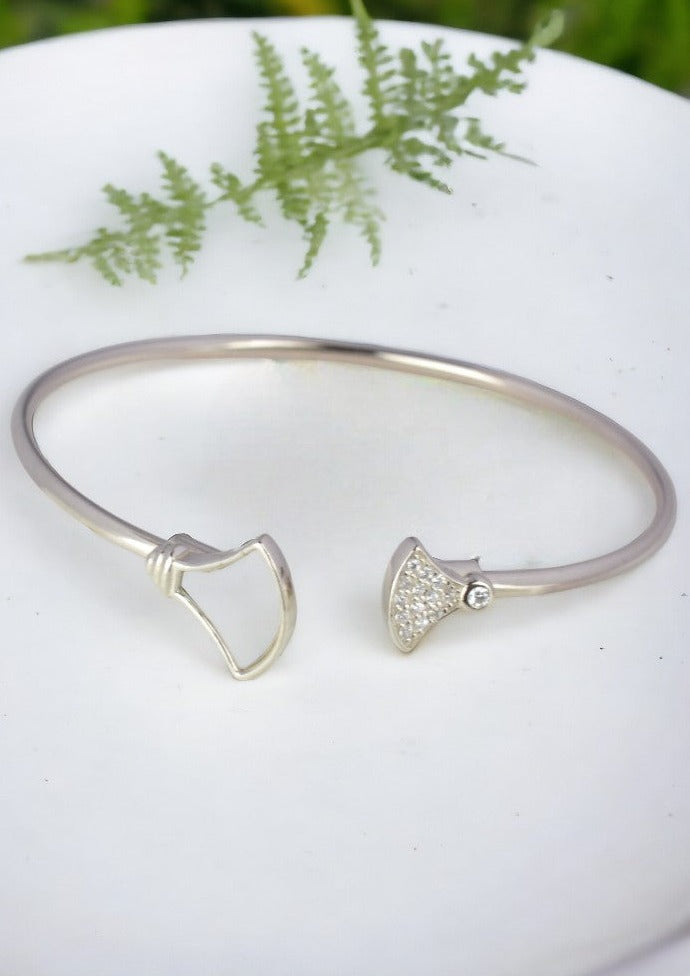 A stunning 925 Sterling Silver Kada Bracelet featuring two intricate flower designs, exuding timeless beauty. This exquisite piece blends classic elegance with modern style, making it the perfect accessory for any occasion.