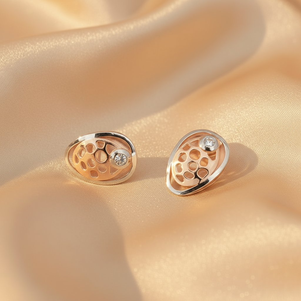 Intricately crafted with a floral mesh design, these studs blend elegance with artistry. Made from 925 sterling silver, they’re lightweight and perfect for all-day wear. Add a touch of timeless charm to your everyday or festive look.