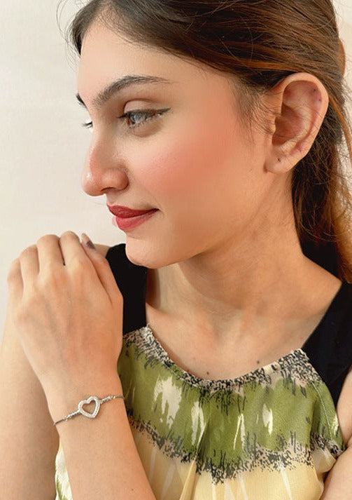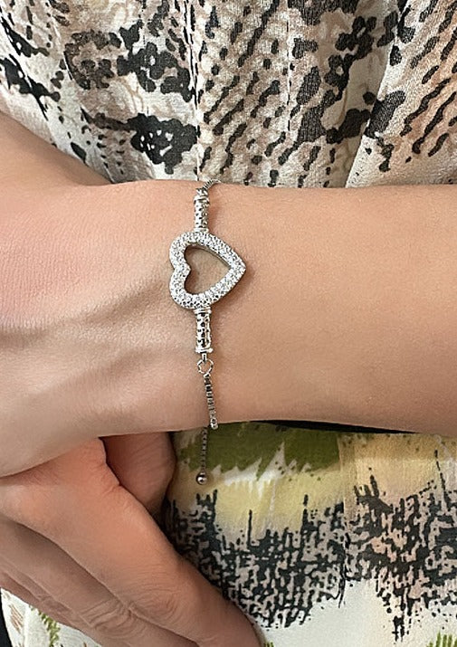 Elevate your style with our exquisite 925 sterling silver bracelet. Crafted with precision, this adjustable piece features high-quality CZ zircons meticulously arranged in a heart shape.