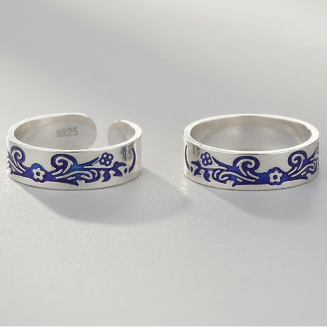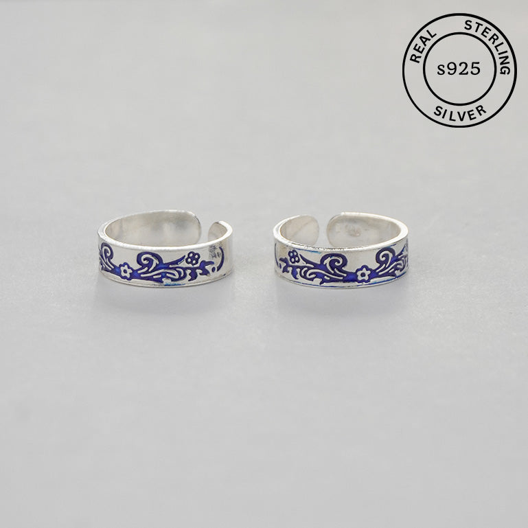 Gracefully crafted in genuine 925 sterling silver, these adjustable toe rings feature delicate blue enamel floral motifs for a timeless, ethnic charm. Lightweight, comfortable, and perfect for daily wear or festive styling—these toe rings add a subtle pop of color and elegance to your traditional and modern looks alike.