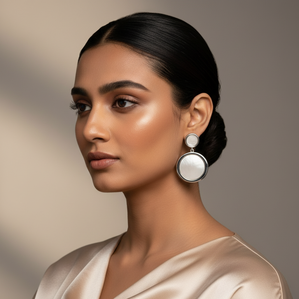 Discover timeless elegance with the 925 Sterling Silver Circle Dangles featuring a delicate Mother of Pearl design. These earrings showcase shimmering mother of pearl set in sleek, circular silver dangles, blending classic charm with modern sophistication. Perfect for enhancing any outfit with a touch of refined beauty.