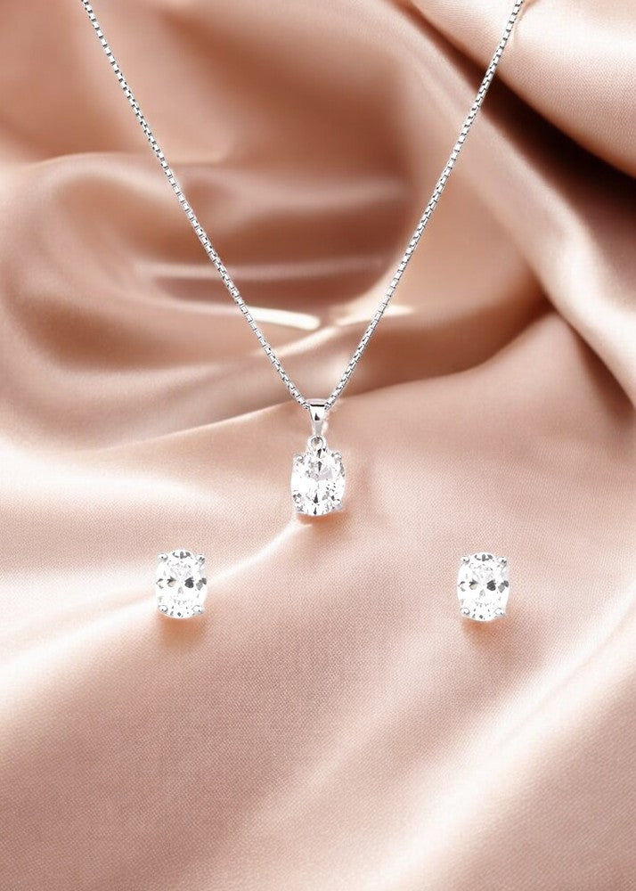 This elegant 925 sterling silver pendant set features a stunning oval-shaped CZ zircon solitaire, offering a timeless and refined look. The minimalist design highlights the brilliance of the zircon, making it a perfect choice for any occasion, from everyday wear to special events.