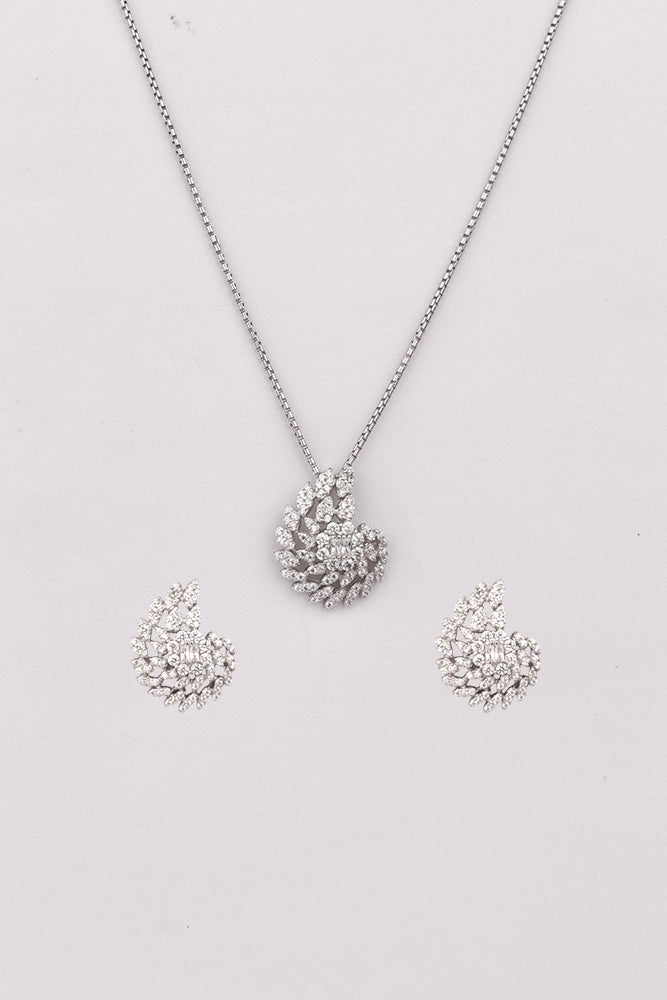 This exquisite 925 sterling silver pendant set features a sleek drop design with a dazzling CZ zircon stone suspended in the center. The elegant drop shape and sparkling zircon create a refined and modern look, perfect for adding a touch of sophistication to any ensemble.