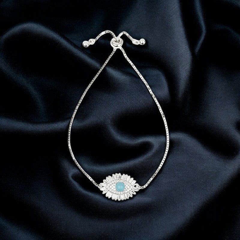 This 925 sterling silver evil eye bracelet combines elegance with protection, featuring a delicate design that wards off negativity. Perfect for everyday wear, it adds a stylish touch while symbolizing good luck and positive energy.