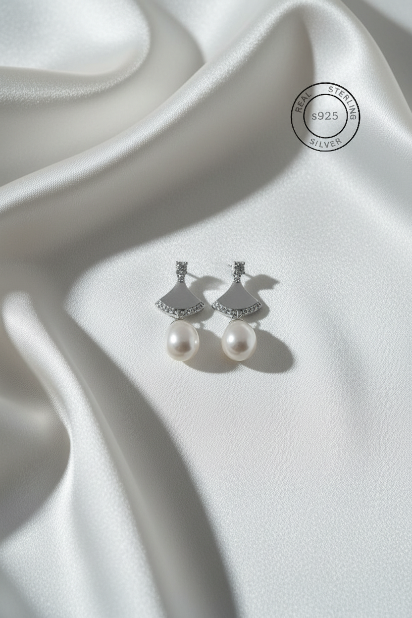Elegant 925 sterling silver triangular pear drop dangles with a timeless design. Perfect for adding a touch of sophistication to any outfit.